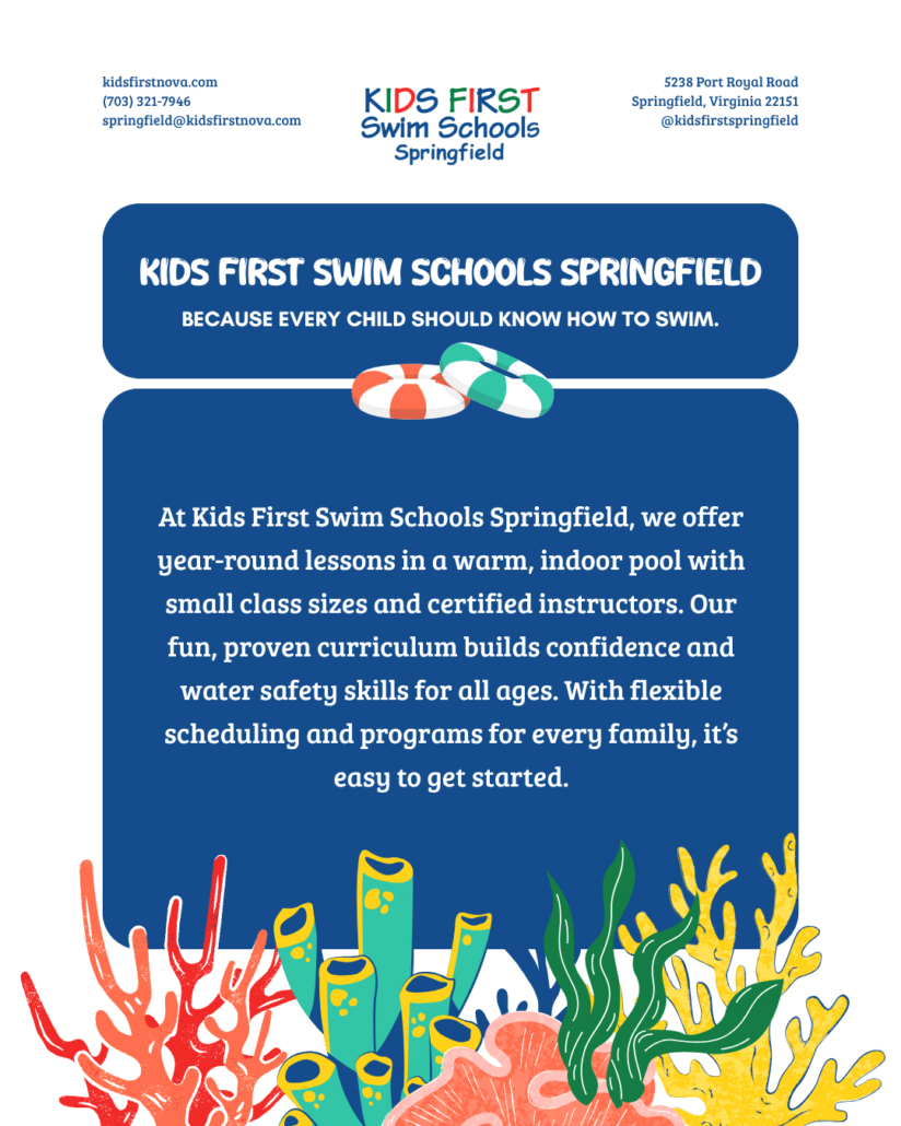 Looking for swim lessons for your little one? We love our community partner @KidsFirstSpringfield! Their warm, indoor pool, small class sizes, and amazing instructors make swim lessons fun, safe, and effective. Check them out!